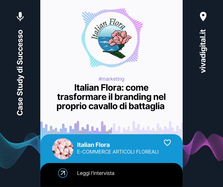 Italian Flora si è affidata a Viva Digital per l’espansione su scala internazionale del brand e grazie ad una precisa strategia di web marketing è oggi una delle realtà più importanti in Italia di questo settore con oltre vent’anni di esperienza. Insieme oltre alla realizzazione di un sito multilingua abbiamo raggiunto l’obiettivo di raggiungere un pubblico interessato al di fuori del territorio nazionale. Italianflora.com è una delle nostre storie di successo perché siamo riusciti ad accrescere in modo capillare non solo la rete globale di clienti ma anche quella di fornitori.